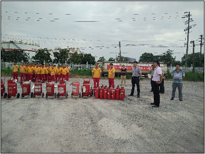 上午8:30演練準(zhǔn)時(shí)開始,消防官兵對(duì)各種滅火器具的使用進(jìn)行專業(yè)講解和操作演示。演練項(xiàng)目包括初起火災(zāi)撲救、模擬發(fā)油臺(tái)提油車輛發(fā)油過程中著火撲救、庫區(qū)儲(chǔ)油大罐火災(zāi)撲救,演練持續(xù)2個(gè)小時(shí).整個(gè)演練過程指揮有力、分工明確、配合默契、實(shí)戰(zhàn)氛圍濃厚。期間,在總公司物流中心領(lǐng)導(dǎo)及油庫管理人員的陪同下,安監(jiān)局陳局長還實(shí)地察看了油庫的安全監(jiān)控系統(tǒng),詢問油庫安全生產(chǎn)工作各項(xiàng)措施的落實(shí)情況。