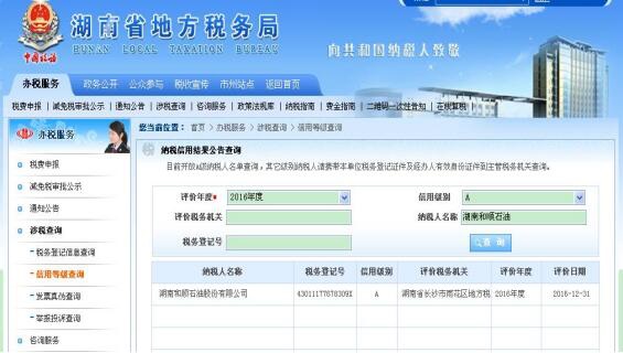 為推進(jìn)社會(huì)誠信體系建設(shè),湖南省國稅局、地稅局按照國家稅務(wù)總局《納稅信用管理辦法(試行)》(總局公告2014第40號(hào)),開展了2016年度納稅信用聯(lián)合評(píng)價(jià)工作,我司再次獲得納稅信用“金字代言——A級(jí)納稅人”的稱號(hào),我司已連續(xù)三年獲此榮譽(yù),展現(xiàn)了誠信納稅的良好企業(yè)形象。